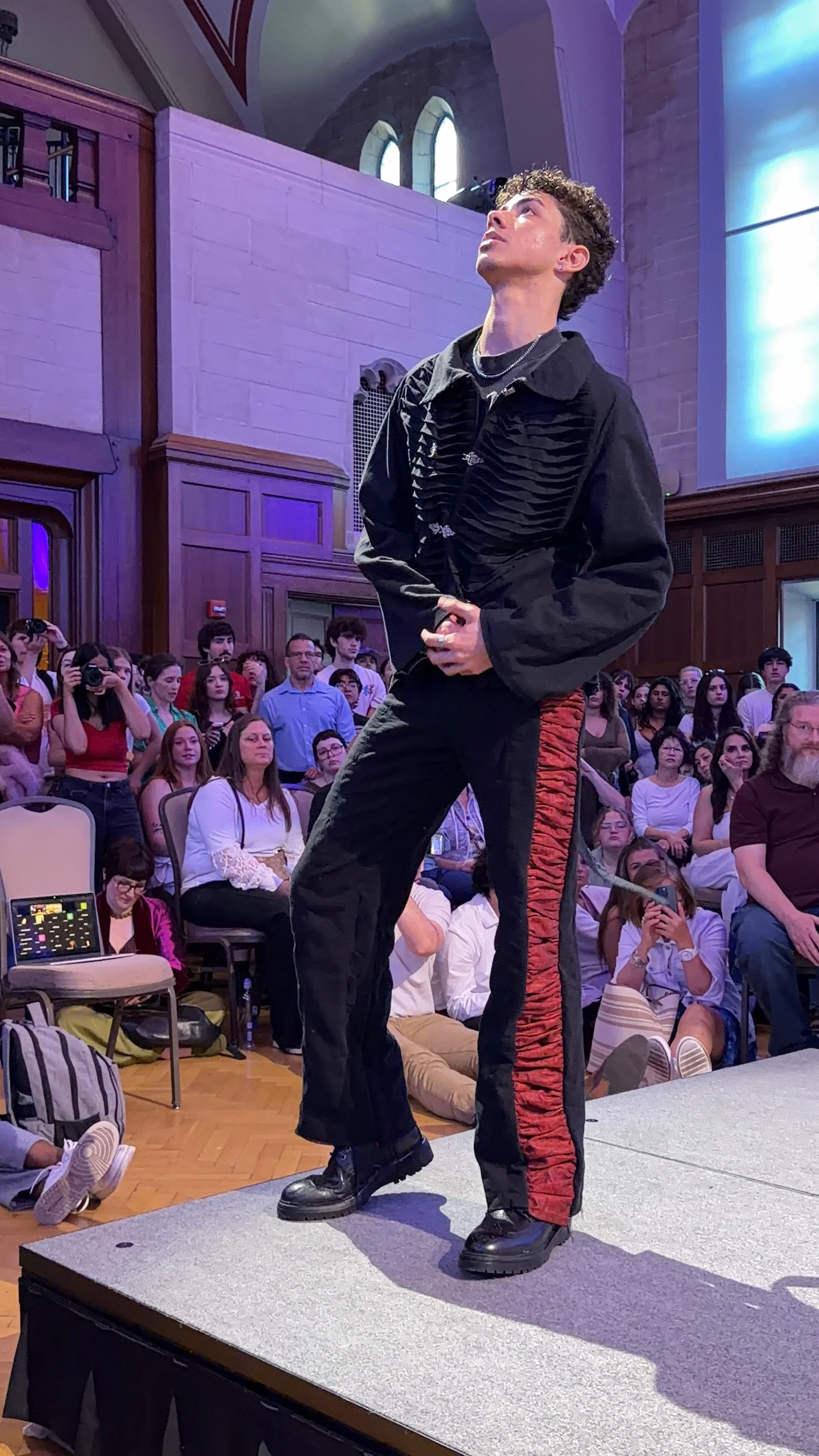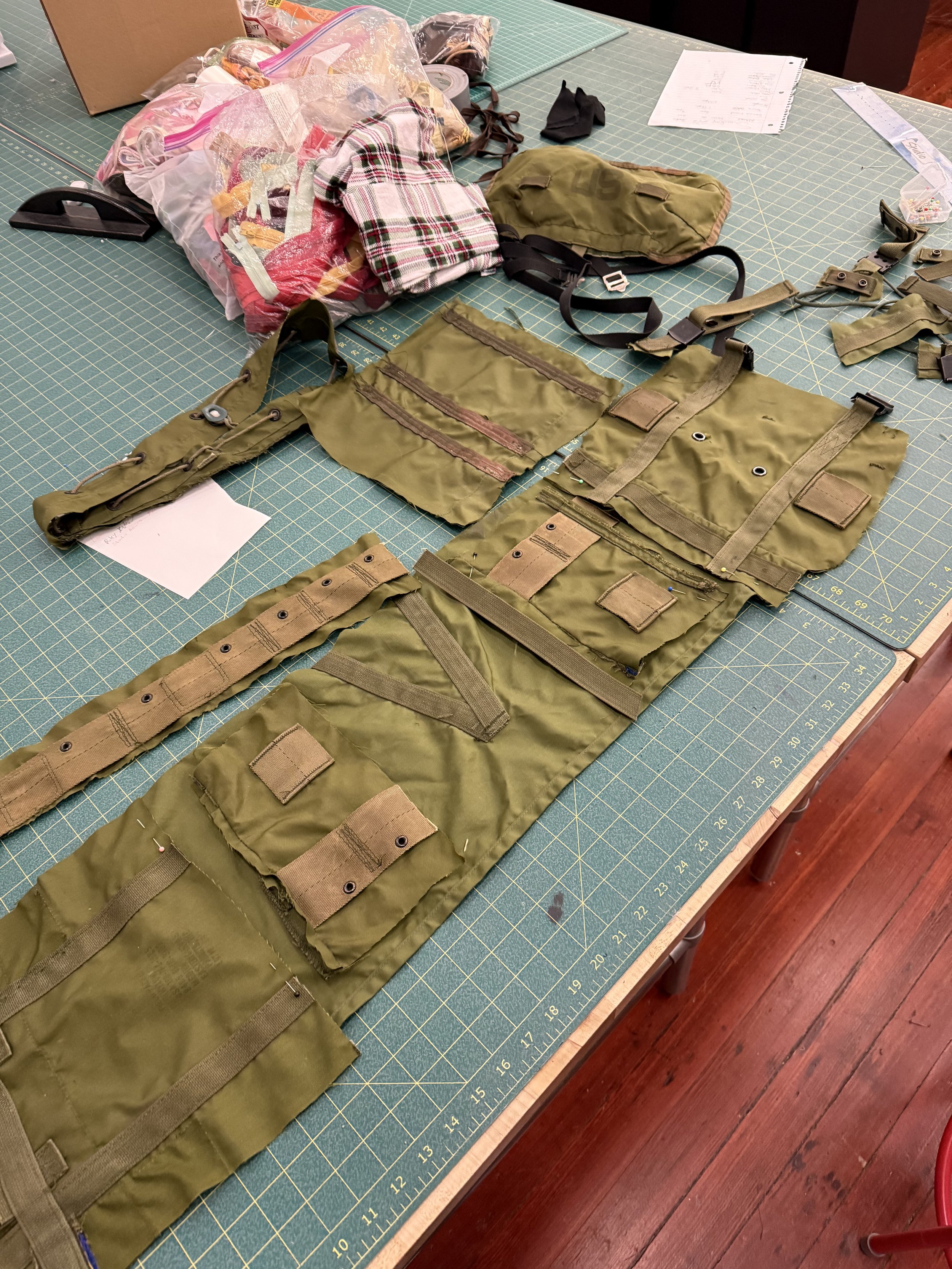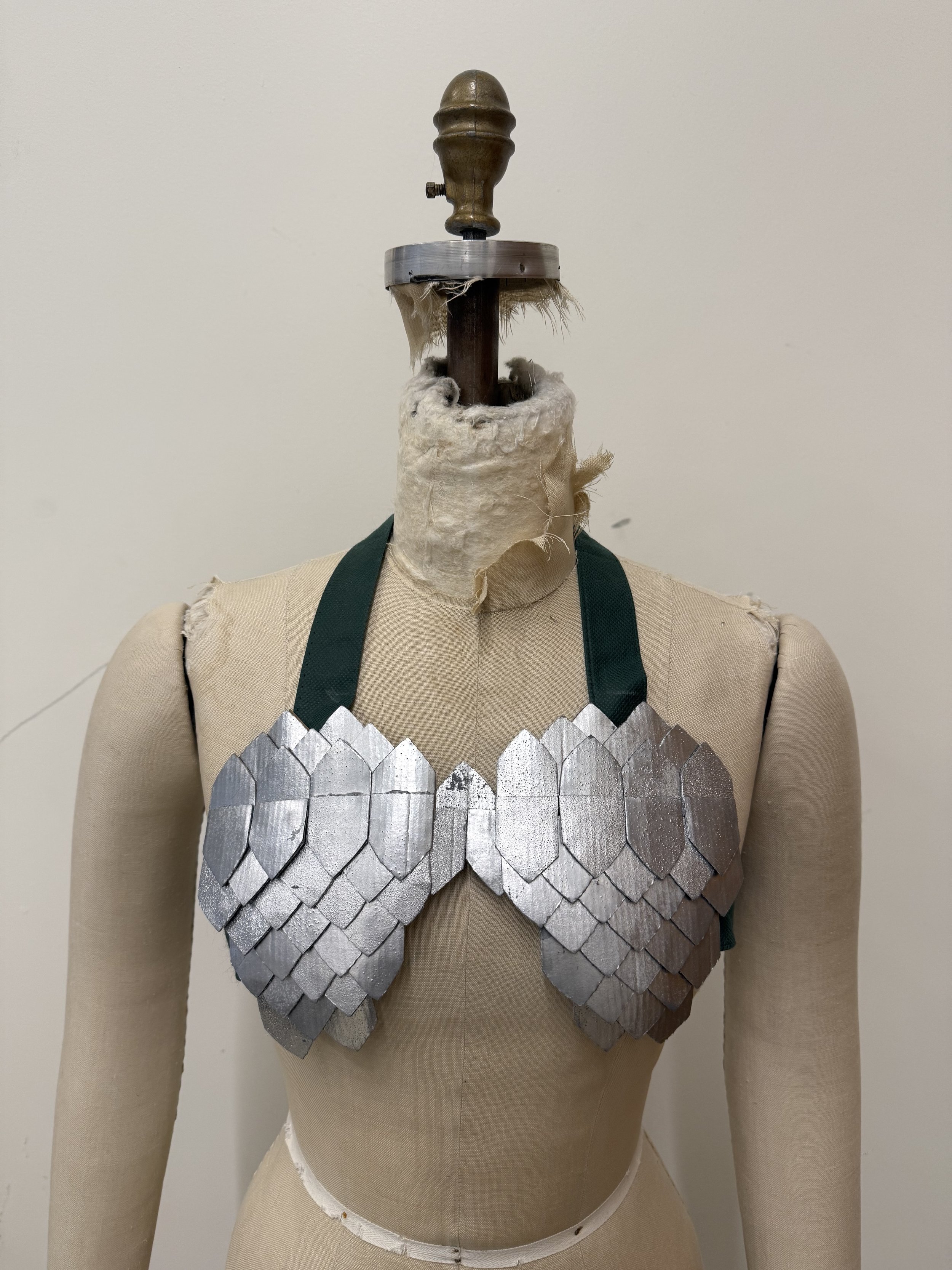Born from recycled materials, the ensemble Armored Ascension was created with the use of cardboard, hot glue, and a repurposed military backpack.